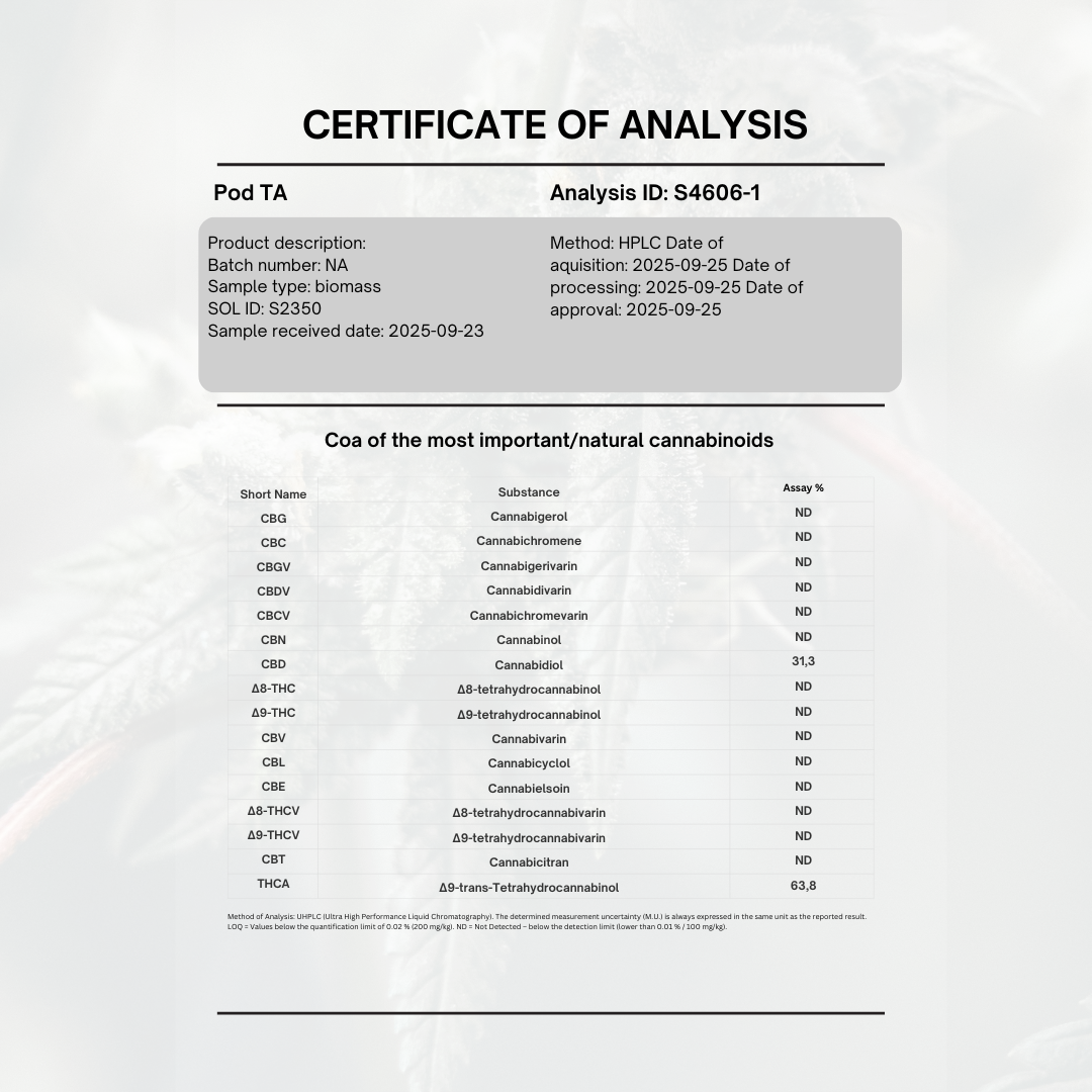 Grandaddy Purple är en välkänd klassiker bland THCA-produkter. Smaken är djup och rik, med tydliga toner av druva, bär och en lätt jordig bas som ger en autentisk känsla. Kombinationen av 64 % THCA, 31 % CBD och 6 % terpener skapar en mjuk, balanserad upplevelse med tydlig premiumkaraktär.